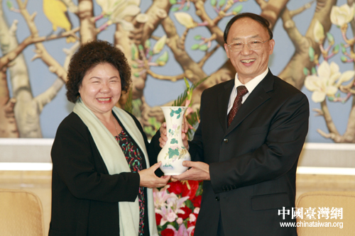 22日下午,中國奧委會主席劉鵬在北京飯店會見了高雄市市長陳菊。圖為劉鵬向陳菊贈送精美禮品。(中國臺灣網 田云鵬 攝) 第1頁第2頁第3頁第4頁