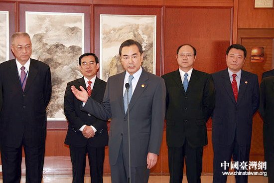 5月25日上午,中共中央臺(tái)辦主任王毅在北京機(jī)場(chǎng)致辭歡迎中國(guó)國(guó)民黨主席吳伯雄一行。中國(guó)國(guó)民黨主席吳伯雄率領(lǐng)中國(guó)國(guó)民黨大陸訪問團(tuán)于25日11時(shí)5分許乘機(jī)抵達(dá)北京,開始訪問大陸行程。中共中央臺(tái)辦主任王毅到機(jī)場(chǎng)迎接。 (中國(guó)臺(tái)灣網(wǎng) 鐘寶華 攝)