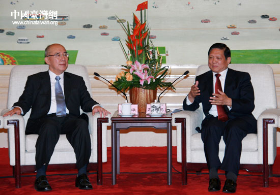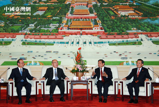 中國臺灣網5月26日北京消息 今天上午11時30分,北京市委書記劉淇在人民大會堂北京廳會見中國國民黨主席吳伯雄率領的“中國國民黨大陸訪問團”一行。(記者 鐘寶華)