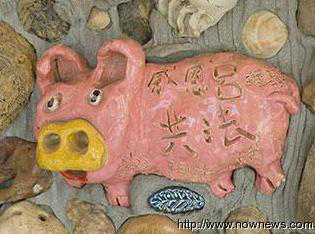 呂共法夢(mèng)想以藝術(shù)營(yíng)造小區(qū)讓北平村有了大轉(zhuǎn)變,村民聯(lián)手做了一只粉紅豬,將感恩寫在豬身上。(圖片來源:臺(tái)灣“今日新聞”)