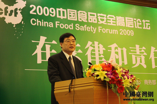 國家質(zhì)檢總局總工程師張綱在2009中國食品安全高層論壇上發(fā)言。(中國臺灣網(wǎng) 高琿 攝)