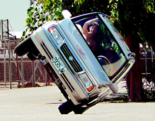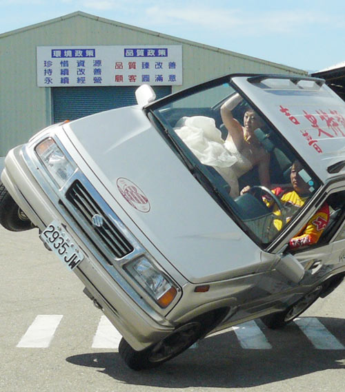 中國臺灣網6月29日消息 據臺灣《聯合報》報道,臺灣第一位駕駛吉普車高空走鋼索的女性特技表演者張芳雯,昨天嫁給自行車工程師周柏村,她的父親臺灣東方汽機車特技表演團團長張承志,特別安排“特技婚禮”送她出閣。她坐在父親旁邊,表演完蹺蹺板特技,再以半側懸空、單側兩輪在地上繞圈,毫無畏色。(羅煜明)