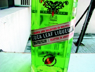 “艾克香”瓶身標簽上就印有“oca leaf liqueur”(即古柯葉酒)。圖片來源:臺灣《聯合報》
