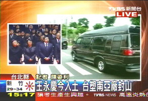 中國(guó)臺(tái)灣網(wǎng)7月2日消息 據(jù)臺(tái)灣TVBS電視臺(tái)報(bào)道,有“經(jīng)營(yíng)之神”之稱的臺(tái)塑企業(yè)創(chuàng)辦人王永慶的入土儀式,今天下午進(jìn)行。下午1點(diǎn)30分開始祭祀,將棺木移至墓地,下午3點(diǎn)15分準(zhǔn)時(shí)入土。