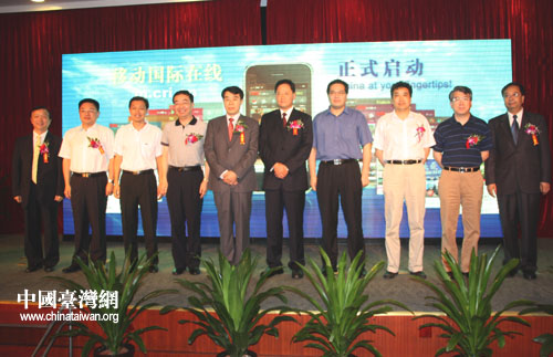 “移動國際在線”今天在北京正式啟動,圖為出席啟動儀式的部分嘉賓合影。(中國臺灣網(wǎng) 張弛 攝)