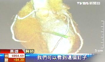 高雄小港醫院醫師周俊仁表示:“我們可以看到釘子仿佛是穿過血管,在開刀房趕快把胸骨切開,然后把釘子拔掉,拔掉之后血會噴出來,所以我們再做血管修補手術。”