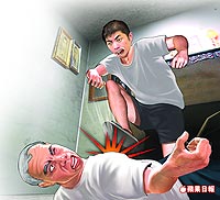 沈弘隆酒后向父親要錢不成,惱羞成怒將父親推倒在地,狠踹父親肚子十多腳。(來(lái)源:臺(tái)灣《蘋果日?qǐng)?bào)》)