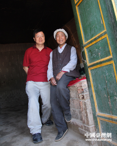 中國(guó)時(shí)報(bào)的記者和目前仍住在窯洞的大媽合影(中國(guó)臺(tái)灣網(wǎng) 楊永青 攝)