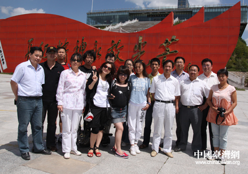 7月22日,參加兩岸媒體寧夏南部行的大部分記者和當(dāng)?shù)毓賳T在六盤山紅軍長(zhǎng)征紀(jì)念館前合影留念。(中國(guó)臺(tái)灣網(wǎng) 楊永青 攝)