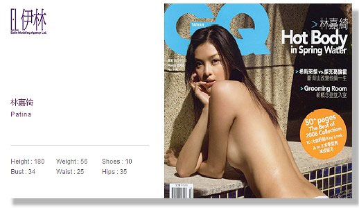 9月5日,臺北聽奧開幕式中,林嘉綺將以全裸、人體彩繪之姿登場。事實上,身為專業名模,林嘉綺并不怕裸體,圖右是她在2008年元月身穿水鉆遮蔽“重點”的撩人照。圖片來源:臺灣“今日新聞”