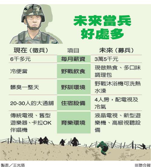 臺(tái)軍征兵制和募兵制的對(duì)比。(圖片來源:臺(tái)灣《聯(lián)合報(bào)》)