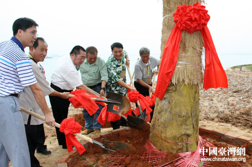 兩岸媒體共植“重陽木”,象征友誼長存(中國臺灣網 李徽 攝)