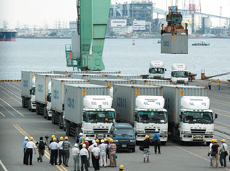 海協(xié)會援助南臺灣災(zāi)區(qū)的首批組合屋昨天運(yùn)抵高雄港,臺灣“海關(guān)”以免審免驗(yàn)方式給予快速“通關(guān)”。圖片來源:臺灣《聯(lián)合報》