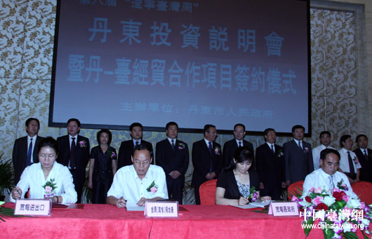 第八屆“遼寧臺灣周”期間,丹東市舉行投資環境說明會暨丹臺經貿合作項目簽約儀式,現場簽訂18個投資合作協議。(中國臺灣網 鐘寶華 攝)