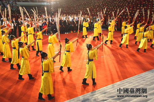 9月27日上午,2009年第二屆兩岸師生聯合祭孔大典在臺灣新竹縣立體育館舉行,圖為祭孔大典現場。(中國臺灣網 李杰 攝)