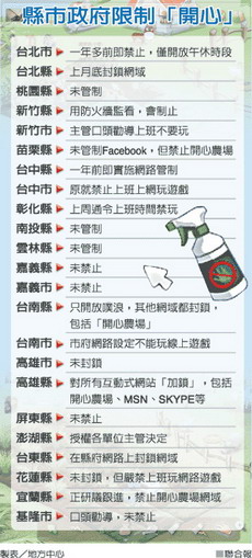 臺灣縣市政府禁玩開心農場。(來源臺灣《聯合報》)