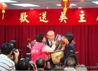 國民黨第18次全代會即將于本周六(17日)登場,新舊主席將進(jìn)行交接,國民黨14日下午特別為將卸任的黨主席吳伯雄舉辦歡送茶會,國民黨“立委”楊瓊瓔在茶會上獻(xiàn)花并獻(xiàn)吻。來源:臺灣“今日新聞網(wǎng)”