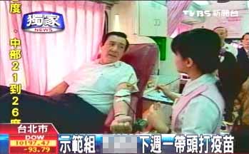 臺當局“衛生署疾管局發言人”周志浩:“國光生技在周二的時候,是捐給指揮中心1千支(疫苗),馬英九如果出來帶頭接種的話,對預防接種的工作,非常有幫助的情形之下,我們就會用這些(捐的)疫苗來給他接種!