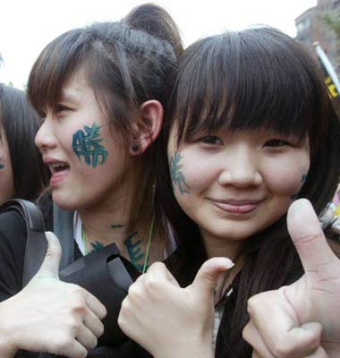 選舉期間的民進黨助選美女 來源:臺灣《聯合報》