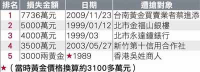 島內五大搶案,幣種為新臺幣。 來源:臺灣《蘋果日報》