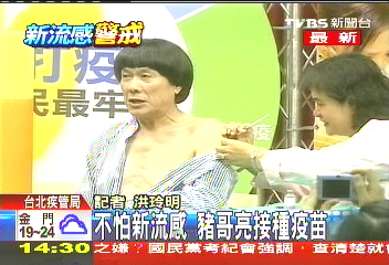 豬哥亮半裸接種甲流疫苗 差點挨兩針(圖片來源:臺灣TVBS電視臺)