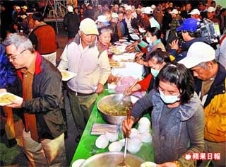 有些競選總部提供米粉、魚丸湯給支持者享用,等候開票。 來源:臺灣《蘋果日報》