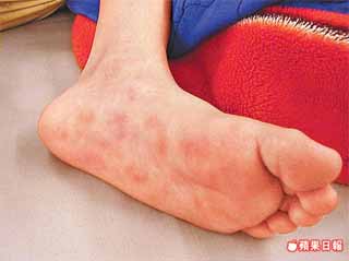 臺灣劉姓男童打完疫苗的隔天,腳底就出現紅疹。 來源:臺灣《蘋果日報》