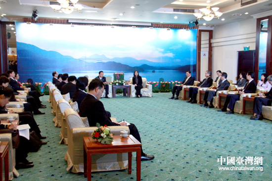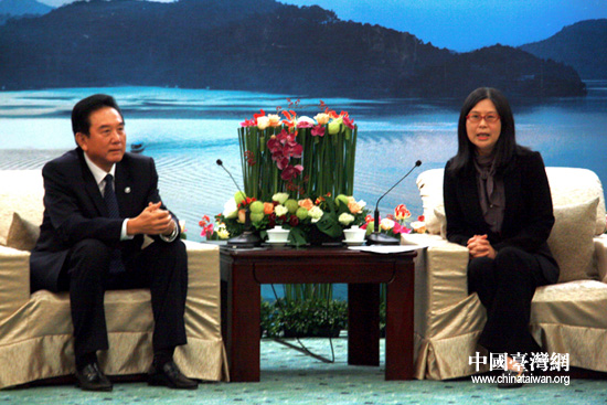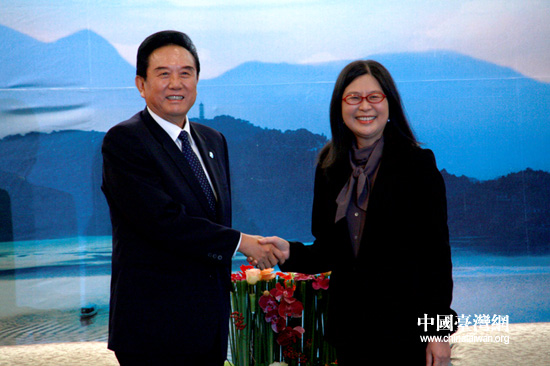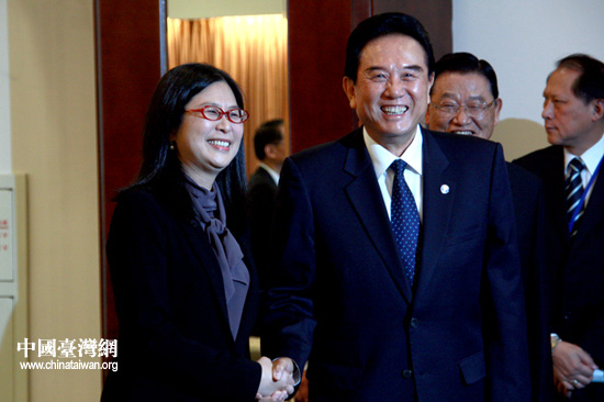 22日下午,參加兩會(huì)第四次領(lǐng)導(dǎo)人會(huì)談的海協(xié)會(huì)會(huì)長(zhǎng)陳云林與臺(tái)灣大陸事務(wù)主管部門負(fù)責(zé)人賴幸媛會(huì)面。(中國(guó)臺(tái)灣網(wǎng) 李徽 攝)