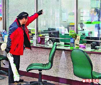 王先生指出,短少這筆錢生意做不成了,“我的信用也因此破產!”氣得他立刻趕回臺灣,找辦理匯款的郵局質問,“郵局告訴我,這并非郵局業務,而是委由銀行處理,他們說會告知銀行,查了以后再通知我。”但由于王先生始終未接獲回復,他一氣之下昨竟拿著用塑料袋包裹的棍狀健身器材,沖到臺北市南港路二段的郵局砸桌理論。