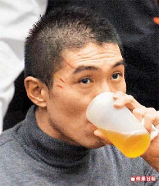 一陣沖突后,國(guó)民黨“立委”謝國(guó)梁臉上掛彩。 來源:臺(tái)灣《蘋果日?qǐng)?bào)》
