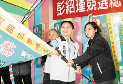 民進黨候選人彭紹瑾溪南競選總部昨日成立,蔡英文站臺助勢并授旗。(圖:臺灣《中國時報》)
