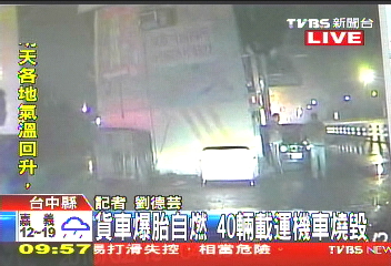 貨車在臺中縣爆胎自燃(圖:臺灣TVBS電視臺)