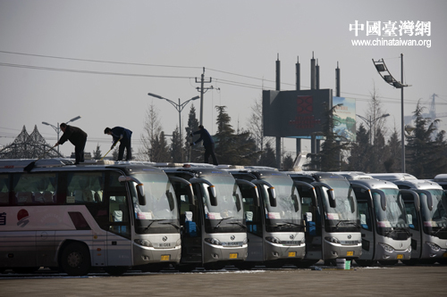 兩會保障車輛排列整齊準(zhǔn)備就緒。 (中國臺灣網(wǎng) 肖春陽 劉洋 攝)