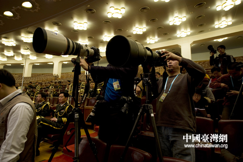 3月3日下午,全國政協(xié)十一屆三次會議在北京人民大會堂開幕,圖為各路記者在人民大會堂拍攝開幕式盛況。(肖春陽、劉洋攝影報道)