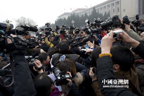 3月3日下午,全國政協(xié)十一屆三次在北京人民大會堂開幕,委員們在人民大會堂前受到記者的圍訪。(肖春陽、劉洋攝影報道)