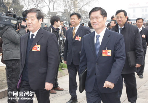 3日下午,全國政協(xié)十一屆三次會(huì)議在人民大會(huì)堂開幕。圖為政協(xié)委員在會(huì)議開始前接受記者采訪。(中國臺(tái)灣網(wǎng) 高斯斯 攝)