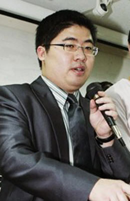 民進(jìn)黨年輕世代昨天舉行記者會(huì),前民代蔡啟芳的兒子蔡易余(左)呼吁年輕人可以上網(wǎng)噗浪,為民代補(bǔ)選催票。圖片來(lái)源:臺(tái)灣《聯(lián)合報(bào)》