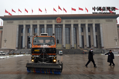 大型除雪設(shè)備確保大會(huì)堂前干干凈凈。 (中國臺(tái)灣網(wǎng)發(fā) 肖春陽、劉洋攝)