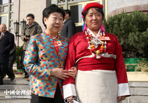 13日上午,全國政協十一屆三次會議勝利閉幕。這是委員們在人民大會堂前合影留念。(中國臺灣網 高斯斯 攝)
