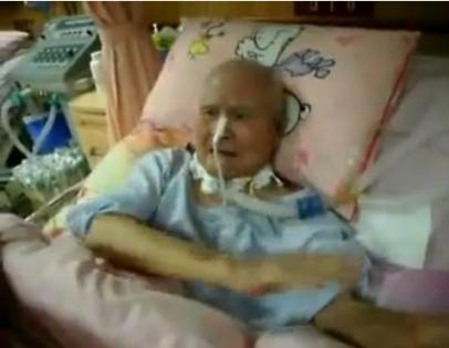 老翁臥病,表情痛苦無法講話,左臂皮膚出血,護士在旁嘲弄戲謔,令人發(fā)指。youtube視頻截圖