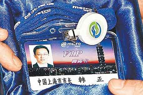 臺北捷運送給韓正捷運VIP一日票,上面以簡體字書寫。圖片來源:臺灣《蘋果日報》