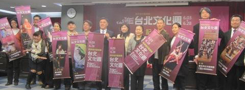 臺北市政府利用今天市政會議會后記者會舉行“兩岸城市藝術節─臺北文化周”宣告啟動記者會。包括明華園團長陳勝福、優人神鼓藝術總監劉若瑀、國光劇團導演李小平、當代傳奇劇場制作人林秀偉、屏風表演班演員朱德剛,以及臺北市立交響樂團團長黃維明、臺北市樂團團長鍾耀光等人都出席今天記者會。