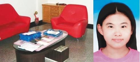 曹家一樓客廳的桌子上整齊擺放曹姓女童寫給不同對象的遺書(左)。右為身亡的曹姓女童。圖片來源:臺灣《聯合報》