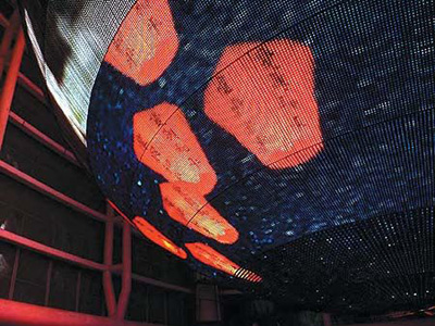 臺灣躍獅科技創(chuàng)意總監(jiān)姚開陽表示,這是由12臺大型專業(yè)投影機自球的兩端經(jīng)無接縫拼接方式達成的,不僅如此,還有來自環(huán)繞四周的8聲道音源,以及多種4D特效搭配,讓觀眾看到花時會聞到花香,看到海豚跳躍時感受到海水飛淺的快感,這是完全由臺灣自行研發(fā)的系統(tǒng),在全球還是首創(chuàng)。