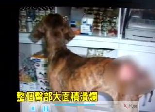 虎斑狗在南投被發現時,屁股被削掉一大塊,差點丟了狗命,就醫時拍下的畫面誰看了都不忍心,獲救后暫時安置在籠子里,隔著鐵欄桿顯得無辜又無助,動物志工倪京臺表示:“它的尾椎疑似被斧頭或利刃砍,整個尾椎都被砍斷,整個臀部大面積潰爛。”