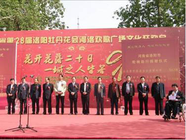 中國臺灣網5月5日洛陽消息 4月30日,洛陽市在周王城廣場舉行“2010年輪椅助行捐贈儀式”,臺北曹仲植基金會向洛陽市捐贈輪椅567輛。市人大副主任楊玉龍、市政府副市長楊炳旭、市政協副主席陳衛平、市臺辦主任馬武立等領導參加了捐贈儀式。