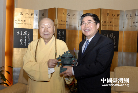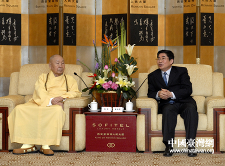 中國臺灣網5月6日西安消息 5月4日下午陜西省省長袁純清在西安會見了由惟覺長老率領的中臺禪寺參訪團一行。