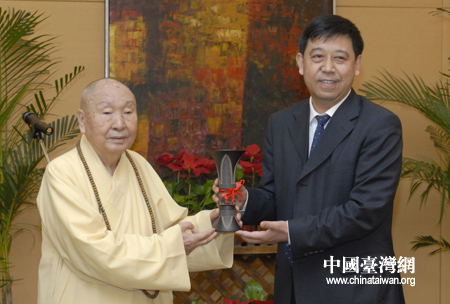 會見后,閆超英向惟覺長老贈送了代表陜西特色的禮品“華縣皮影”,惟覺長老回贈了中臺禪寺的“鎮寺之寶”辟邪半圓水晶模型。(中國臺灣網 陜西省臺辦 聯合報道)