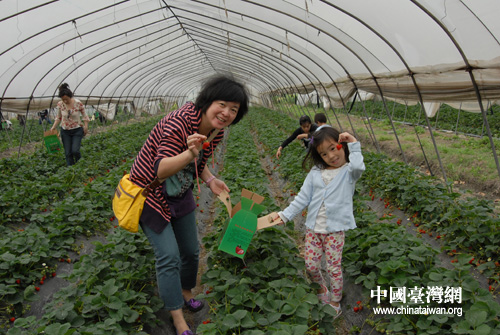 在青浦草莓基地,望見碧葉叢中點綴的紅艷艷的草莓,許多臺灣小朋友早就按捺不住激動的心情,一頭扎進(jìn)塑料大棚,興奮地采摘起來。媽媽們一面招呼小朋友不要著急,一面為孩子們做著示范,告訴小朋友動作要輕柔,不然很容易碰壞草莓。塑料大棚內(nèi),到處是忙碌的身影,處處傳來歡聲笑語,好一幅溫馨、快樂的親子采摘圖。