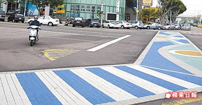 中國(guó)臺(tái)灣網(wǎng)5月13日消息 據(jù)臺(tái)灣《蘋果日?qǐng)?bào)》報(bào)道,臺(tái)中縣梧棲鎮(zhèn)公所今年初爭(zhēng)取兩千萬元預(yù)算,進(jìn)行市區(qū)五大區(qū)域的景觀新意象工程,竟擅自變更道路標(biāo)線號(hào)志,把四維路、大智路口的斑馬線刨除,改繪制五顏六色的圖案;警方獲報(bào)前天派員勘查,確認(rèn)其違反道路交通標(biāo)志標(biāo)線號(hào)志設(shè)置規(guī)則,公所緊急停工并重新設(shè)計(jì)。學(xué)者和民眾都抨擊,斑馬線攸關(guān)民眾通行安全,怎能亂改,公所根本是浪費(fèi)公帑。